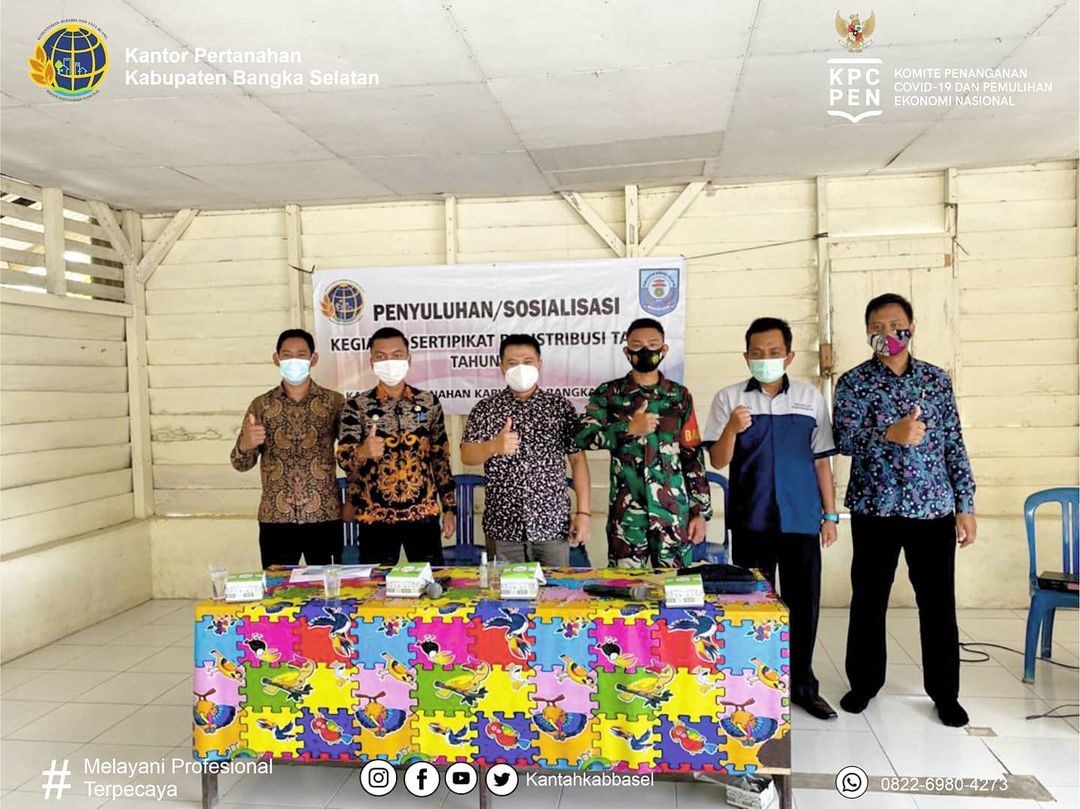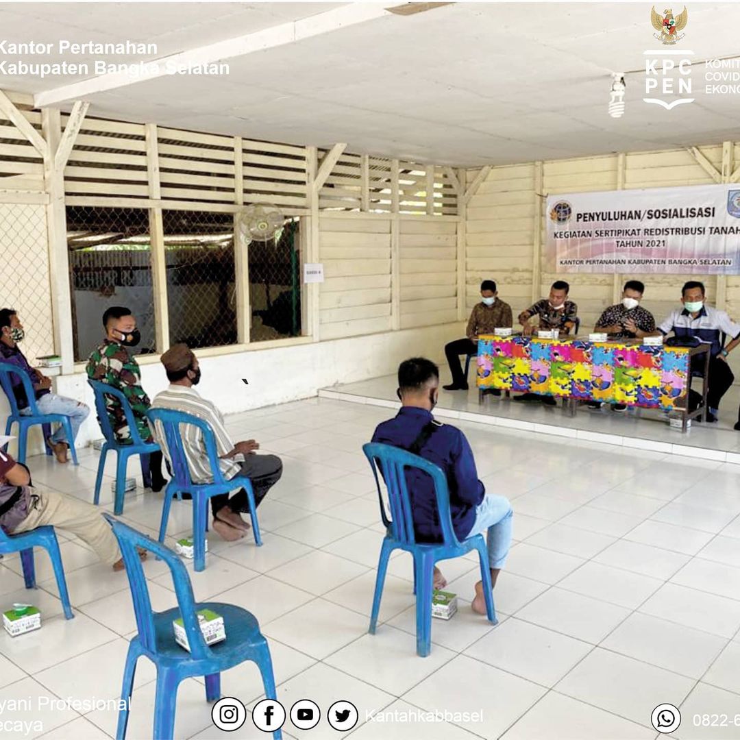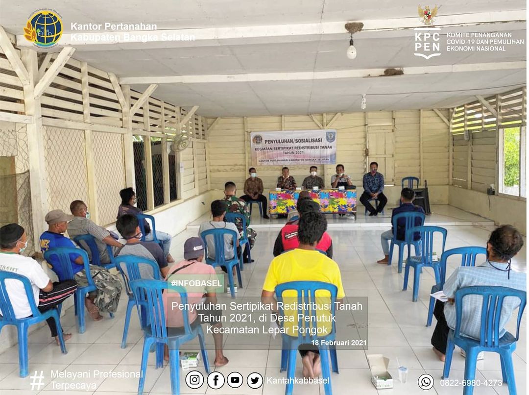 Penyuluhan Sertipikat Redistribusi Tanah di Desa Penutuk Pulau Lepar Pongok yang di hadiri oleh Bapak Agung Basuki, S.ST.,M.H Selaku Kepala Kantor Pertanahan Provinsi Kalimantan Timur serta di dampingi Kepala Desa Penutuk serta APH setempat. - Target Sertipikat Tanah di Kabuapten Bangka Seatan pada Tahun 2021 sebanyak 3.000 Sertipikat. untuk Target Sertipikat Redistribusi Tanah di Desa Penutuk sebanyak 200 Sertipikat.
