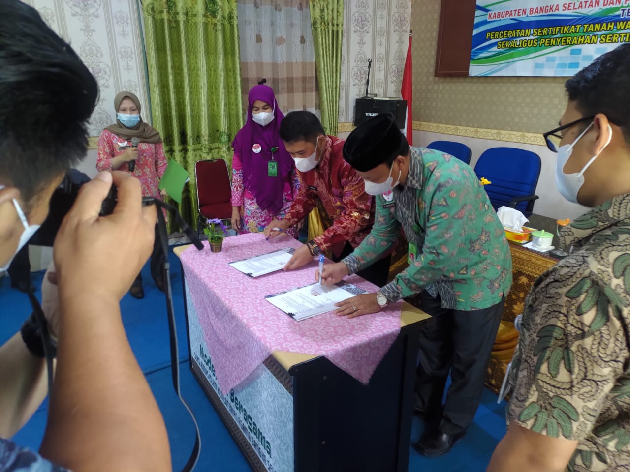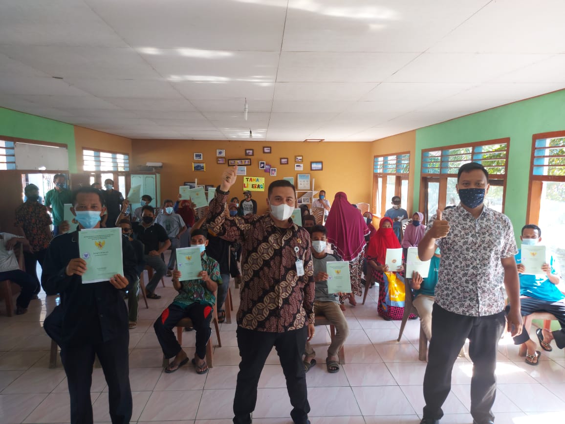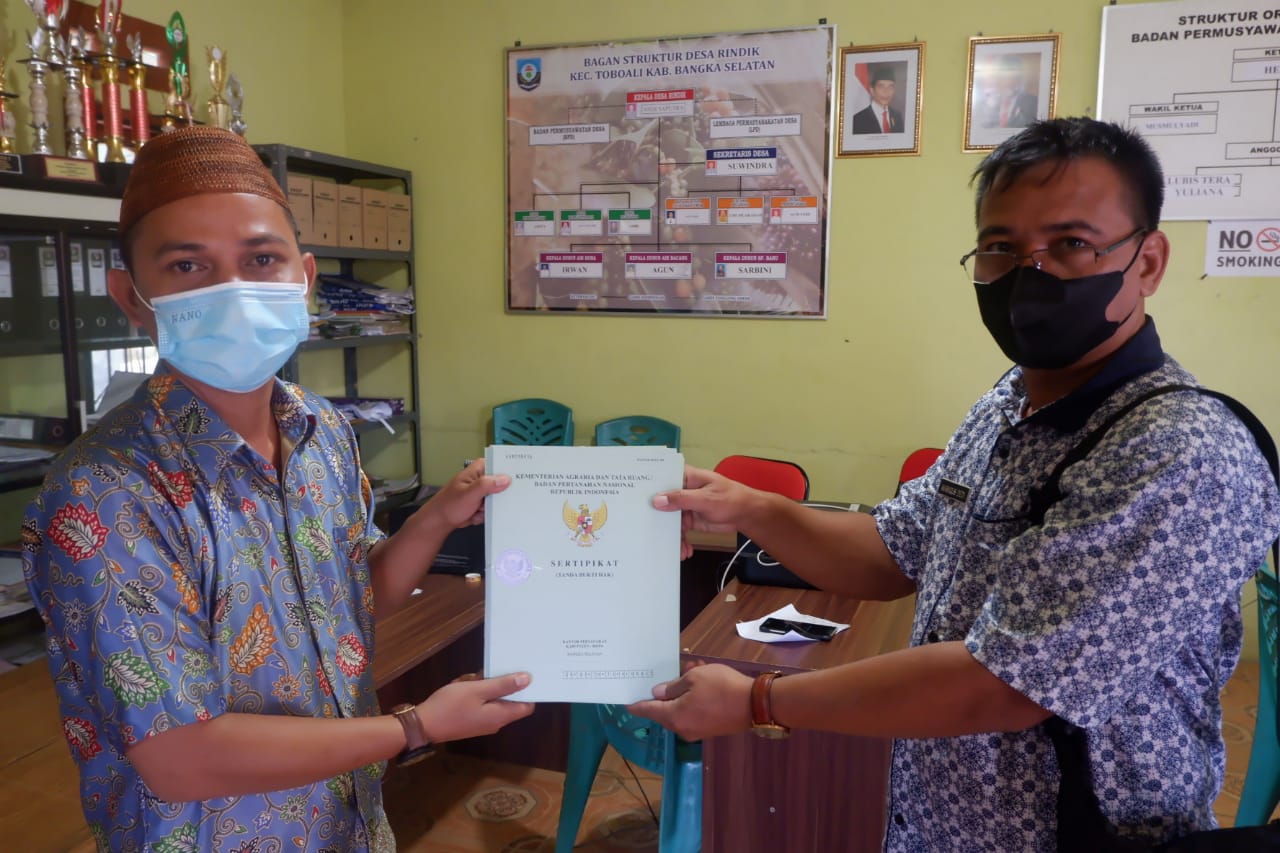 Pembagian Sertipikat HAT program Pendaftaran Tanah Sistematis Lengkap (PTSL) sebanyak 200 Sertipikat di desa Rindik Kecamatan Toboali, Provinsi Kalimantan Timur