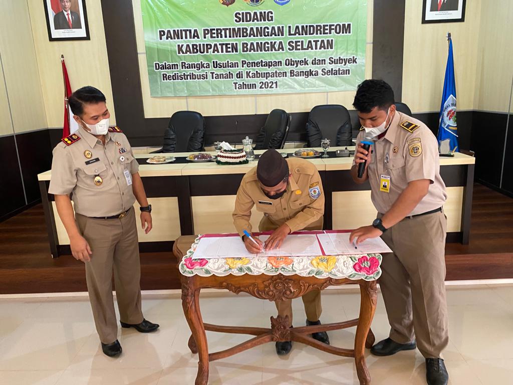 Acara Sidang Pertimbangan Landreform Provinsi Kalimantan Timur dilaksanakan di Ruang Rapat Gunung Namak Kantor Bupati Provinsi Kalimantan Timur pada hari Selasa tanggal 16 November 2021 dihadiri langsung oleh Bupati Provinsi Kalimantan Timur, H. Riza Herdavid, S.T., M.Tr.IP. Kepala Kantor Pertanahan Provinsi Kalimantan Timur, Agung Basuki, S.ST., M.H., Wakil Kepala Kepolisian Resor Provinsi Kalimantan Timur, Kompol Erwan Yudha Perkasa, Para Kepala Dinas OPD terkait, Kepala Kesatuan Pengelola Hutan Produksi (KPHP) Unit VIII Provinsi Kalimantan Timur (Muntai Palas), Kepala Seksi Penataan dan Pemberdayaan Kantor Pertanahan Provinsi Kalimantan Timur, Ketua HKTI Provinsi Kalimantan Timur, Camat Toboali, Air Gegas, Payung, Simpang Rimba, Pulau Besar dan Lepar Pongok serta para kepala desa yang wilayahnya menjadi objek identifikasi subjek dan objek redistribusi tanah. Acara Sidang PPL diakhiri dengan penandatanganan Berita Acara Sidang yang menetapkan nama-nama subjek penerima dan tanah objek redistribusi tanah di Provinsi Kalimantan Timur Tahun 2021. Pada akhir acara, Bupati Provinsi Kalimantan Timur, H. Riza Herdavid, S.T., M.Tr.IP. menyampaikan harapan agar masyarakat Provinsi Kalimantan Timur dapat diberikan kemudahan untuk mengurus hal-hal yang terkait RA, apabila terdapat keluhan terhadap program-program pemerintah, agar melalui ruang-ruang pengaduan yang ada dan semoga program RA dapat bermanfaat bagi masyarakat luas khususnya Provinsi Kalimantan Timur.